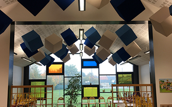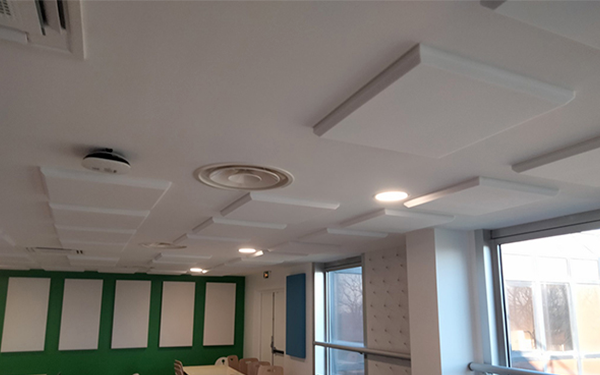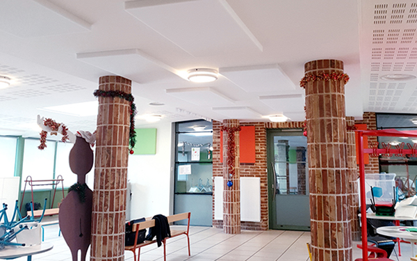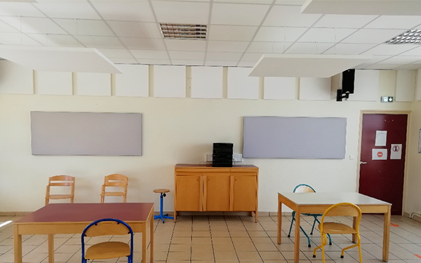 Diminution du niveau ambiant par une amélioration et correction de l’acoustique des locaux et bureaux (mise en place d’écrans acoustiques, traitement des plafonds, murs et sols, etc)